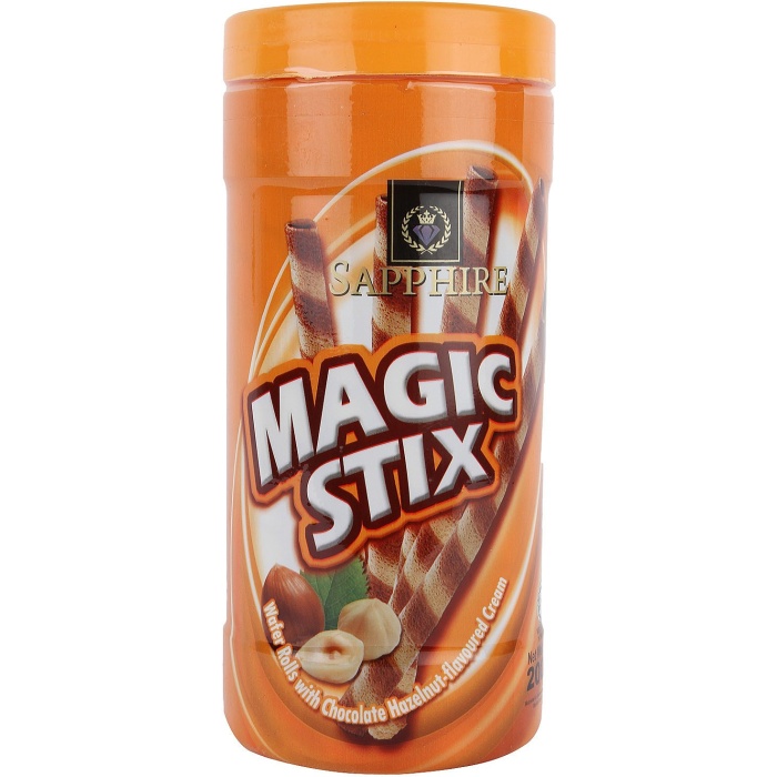Sapphire Magic Stix are crispy wafer rolls filled with smooth chocolate-flavored cream. Perfectly light and crunchy on the outside with a rich, creamy center, these delicious treats are great for snacking, sharing, or pairing with coffee and desserts