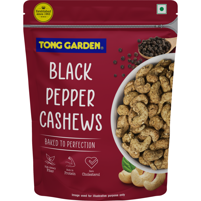 Tong Garden Black Pepper Cashew Nuts offer a rich, buttery crunch with a bold kick of black pepper. These premium cashews are perfectly roasted and seasoned for a deliciously spicy and savory snack. Ideal for on-the-go munching, sharing, or pairing with your favorite beverages.